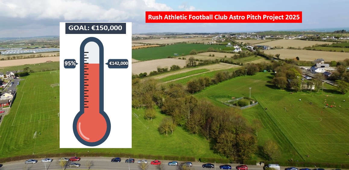 Rush Athletic have been awarded a Sports Capital Grant to build a much needed allweather training pitch behind the clubhouse. In Winter, all our teams have to travel to other towns to train two nights a week, 400 people travelling out and back. A club allweather training facility will change the lives of everyone in our club in so many ways.